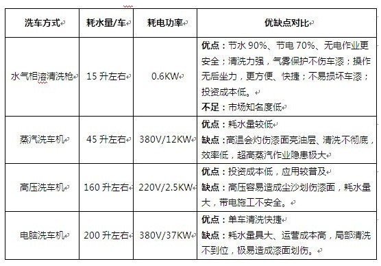 水氣相溶洗車(chē)槍與常見(jiàn)洗車(chē)設(shè)備優(yōu)缺點(diǎn)對(duì)比表
