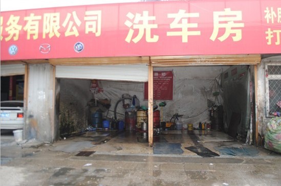 路邊簡(jiǎn)陋洗車(chē)店內(nèi)雜物隨意擺放,污水橫流,嚴(yán)重污染環(huán)境
